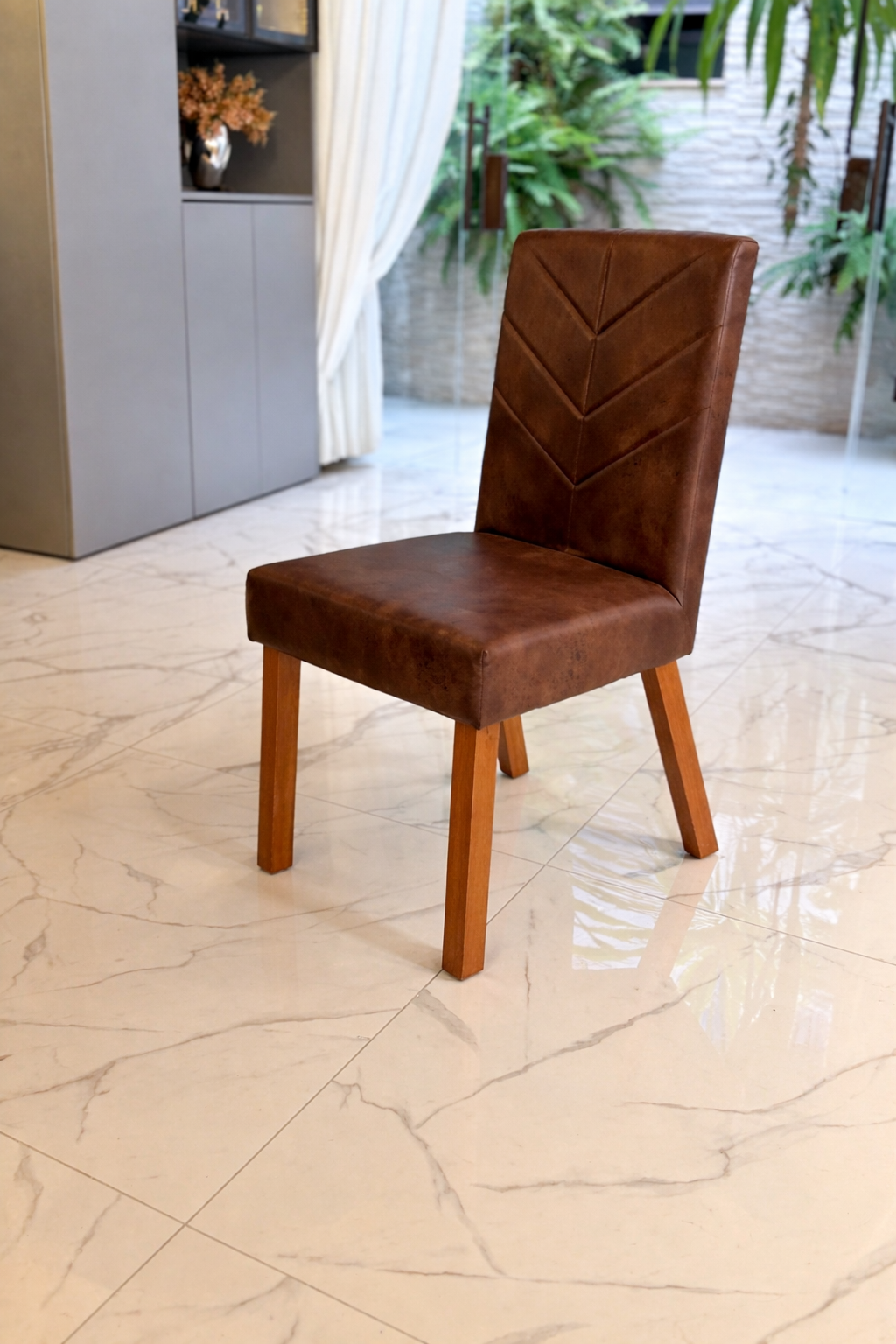 A Cadeira Mark é produzida em 100% eucalipto tratado, garantindo alta resistência e durabilidade. Acabamento com detalhes em bordado, que trazem um toque de elegância ao ambiente. O assento é confeccionado com espuma D28 macia, e revestido em tecido courissimo, conhecido pela textura suave e agradável.